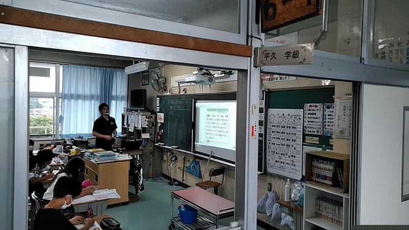 ↑6-1では2組担任古城Tが社会の授業中 ↑6-2では1組担任平久Tが理科の授業中