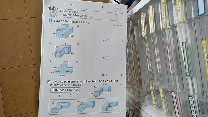 ↑各学年別に「かずみちゃんプリント」がレターケースに入れてあるのですぐできます