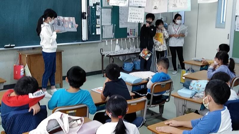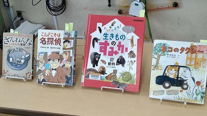 14日(水)ロング昼休みに、5年生の子ども司書5名と図書委員が、1,2年生に本の読み聞かせをしてくれました。「反応があったのでよかった。」と一生懸命練習した成果がでました。図書指導員の大石先生の話だと、新刊本の貸し出しは順調だそうです。「読書の秋」を満喫してください。