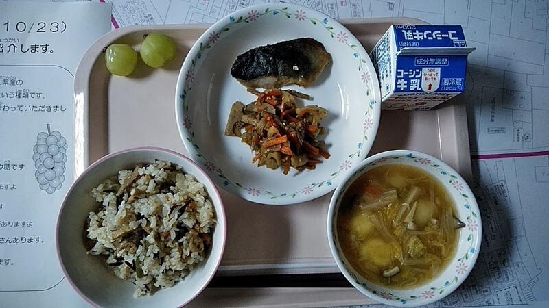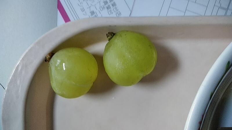 プロ野球のチームではありません。今日のデザートのぶどうの名前なんです。私も初めて聞きました。岡山県産で、形は「もも」にも似ている感じです。皮も食べられるので、子どもたちにも大人気でした。