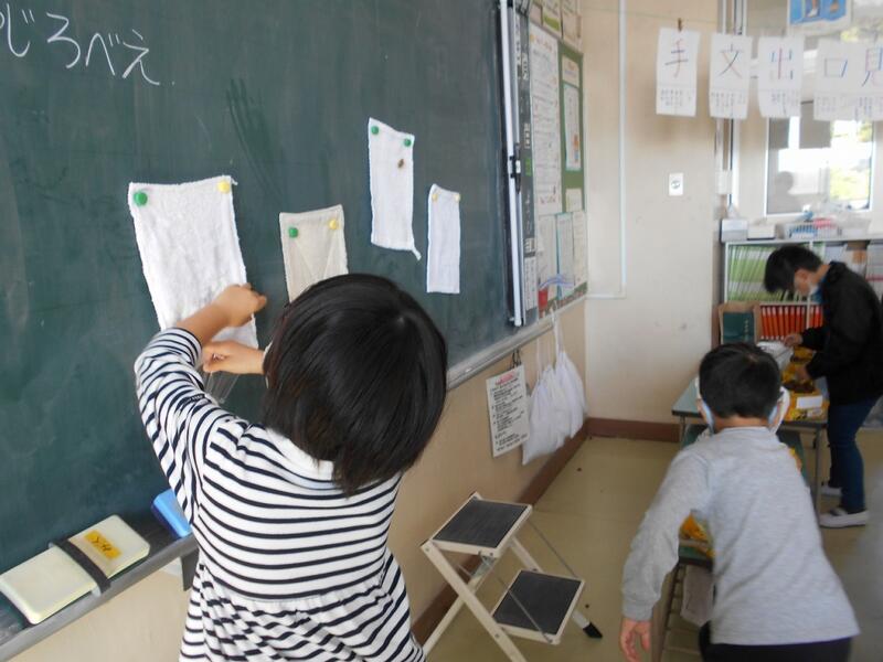 ↑みんな真剣、体育の折り返しリレー ↑そうじもみんなで協力しています