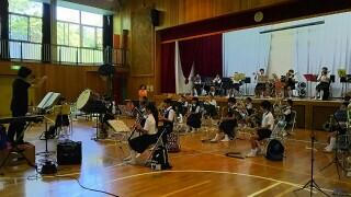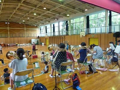 夏休みになりましたが,体育館では吹奏楽部が熱い練習を行っています。