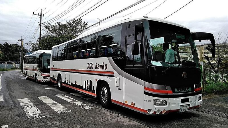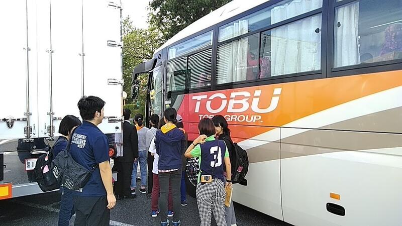 ↑さあ出発だ! ↑1,2年計3クラスが2台のバスに分乗します