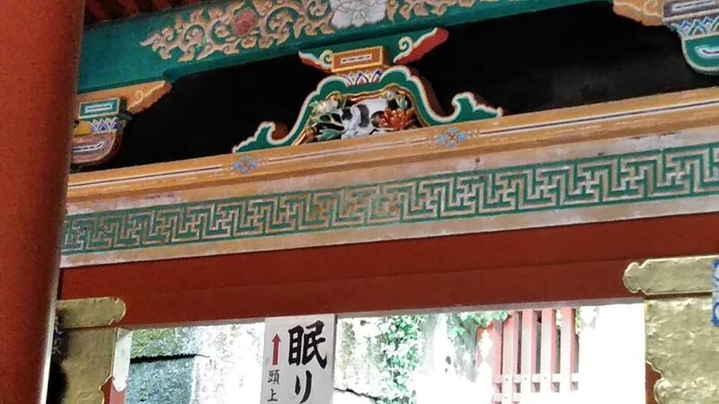 ↑東照宮の鳥居前(修学旅行生で大混雑) ↑三猿 ↑眠り猫