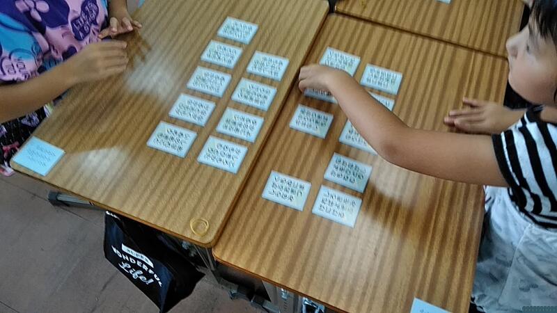 ⑤下の句を読み始めると子どもたちがとりはじめます(3人のところもあります)