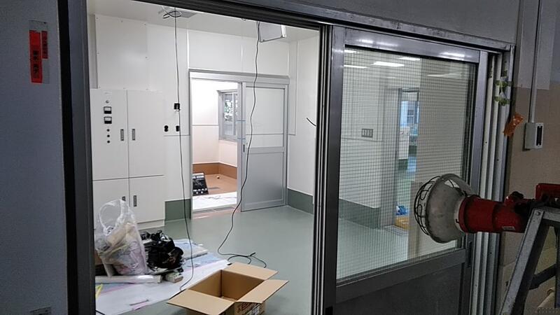↑給食室入口付近 ↑給食室内(あとは器具の取り付け) ↑外回り