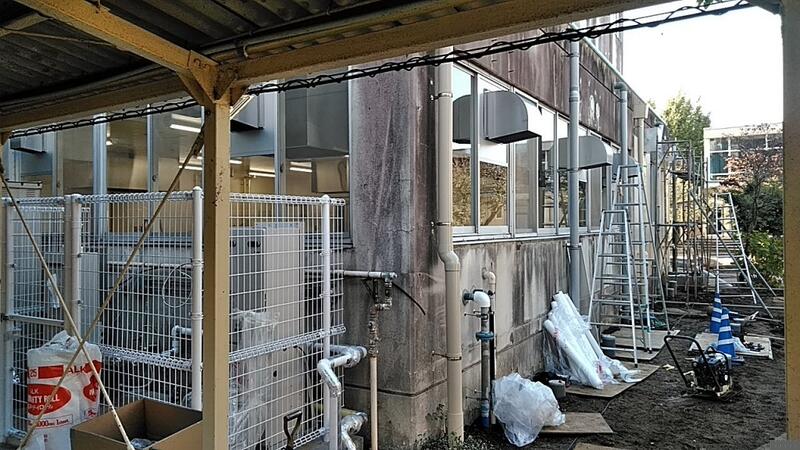 この夏の猛暑や台風で給食室改修工事の進捗状況が心配でしたが、11月26日(月)の給食再開に向けて、順調に工事が進んでいるとのことです。保護者の皆様には、本当に申し訳ありませんが、あと18日間、お弁当作りをどうぞよろしくお願いします。