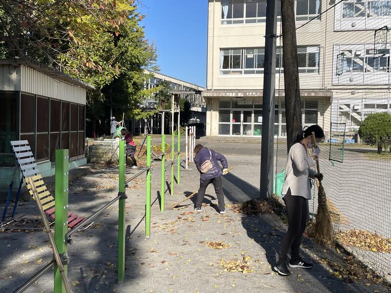 PTAの皆様には,3回にわたり落ち葉掃除にご協力いただきました。