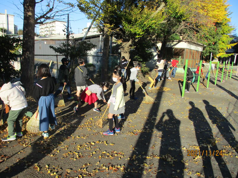 先月,酒井根西小学校では,3つの落ち葉掃除ボランティアの活動がありました。