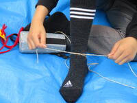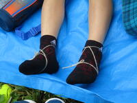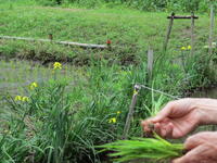 ・田植えの際,靴下だけで入るのですが,泥の中に靴下だけ脱げないように,麻ひもを足に巻きます。
