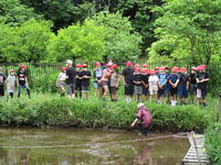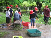 ※初めのグループで体験が終わった子どもたちが,自然に,後のグループのみんなを「足洗い」の場所や,やり方を