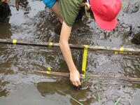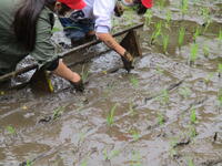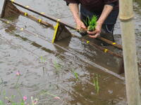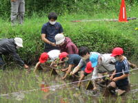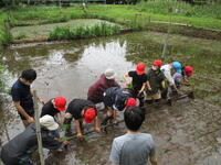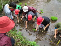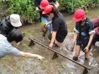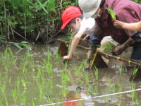 植えた稲の苗は,この後の成長を観察し,9月に「稲刈り」,10月に「脱穀」を体験します。