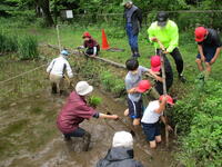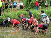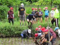 雨天等で延期になっていた,5年生の「田植え体験(下田の杜自然体験学習)」を実施しました。