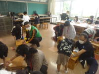 れました。酒西小には,スポンジの数が少なかったのですが,近隣の「南部中学校」のご厚意で,スポンジを