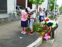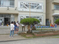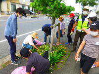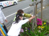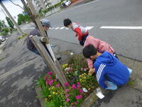 西山町会のお花クラブのご厚意で,登校するときに利用する歩道の花壇に「ひまわりの種まき」を行いました。