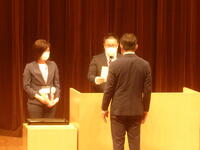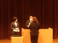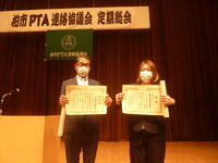 所用で参加できなかった昨年度広報代表の方に代わり,PTA副会長が代理で受け取りました。