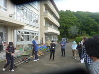 曇り空の中,作業を始めましたが,途中で雨が降り始めてしまいました。雨天のため予定時間を切り上げ終了しま