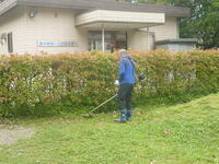 除草作業には,PTA保護者の方々だけでなく,「酒井根地区おやじの会」(酒井根中学区の各小中学校のおやじの会)