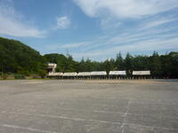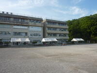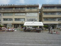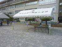【児童席の日よけ】体育発表会当日は暑くなりそうです。近隣の小学校からテントを借用して,児童席の全体に日よけとしてテントを設置しました。