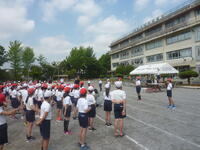 発表に向けた練習も大詰め。暑い陽ざしの中でも,お家の方々に自分の精一杯の姿を見せたいと
