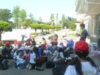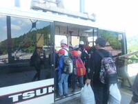 予定通りの時間に学校に到着しました。バスを降りながら,運転手の方にご挨拶をしました。