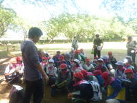 昼食後、集合時間の確認をしてグループ別で手賀の丘公園のアスレチックコースを楽しんでいます。