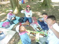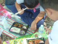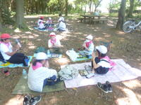 手賀の丘公園の木陰の中で、ゆっくり味わってお弁当の昼食を摂っています。