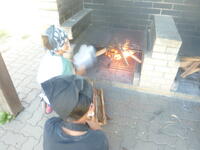 手賀の丘少年自然の家では、飯盒によるご飯炊き、カレー作りを薪で焚いた火で行います。