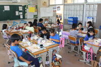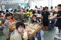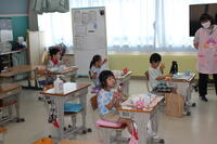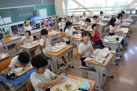 2学期の給食が始まりました。各教室をのぞいてみると夏休み前と変化のあるクラスがありました。3~4人のグループが机を合わせて食事をしていました。5年生に聞くと「1年生の頃はグループで食べていた。」とのことでした。そう考えると4年ぶりなんですね。学級によっては2学期最初の給食なので,これまで通りで食べたクラスもありました。学級ごとに担任の先生が様子を見て変えていくようです。