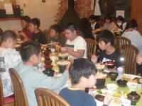 昼食場所である富士屋観光センターに到着。昼食をとっています。