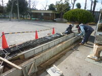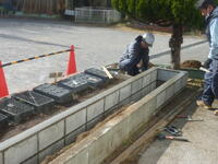 花壇は,一つ一つのブロックを積み直し,崩れないようしっかりと
