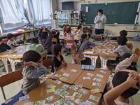 2年生が自分たちが作ったかるたを使って,体育館でかるた大会を行いました。普通のかるたよりワンサイズ大きな絵札を体育館に置いておき,先生が読み札を読むと,絵札に向かって猛ダッシュ!自分が走った方向に絵札があると取れるのですが,なかった場合はどんなに足が速くても絵札をとることができません。反射神経だけでなく,運の良さも必要なかるた大会でした。