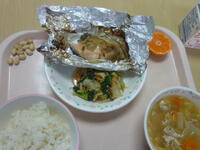今日の給食は,6年生が家庭科の授業で考えた献立「私の理想の給食」から選ばれた一品