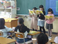 声をそろえ,教室内で聞こえるほど良い声で,練習の成果を発表していました。