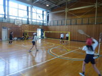 卓球やバドミントンでは,6年生と対戦形式で試合をしていました。