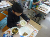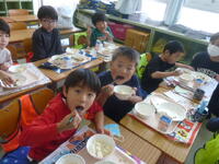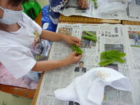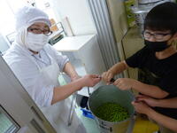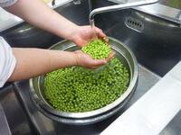 ました。さやむきを行ったグリンピースは,給食調理室にてゆで上げて,本日のメニューとして全校生徒が