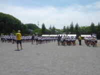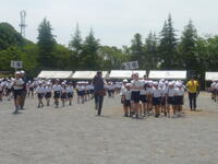 入場行進,隊形つくり,ラジオ体操,退場,の練習を行いました。