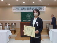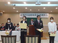 表彰では、前PTA会長の津田さんが、これまでのPTA活動に対して、「PTA活動功労賞」を受賞いたしました。