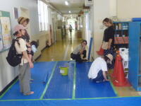 本日(5/24)は4時間授業で,午後は高学年,保護者PTAの皆さんと明日の「体育発表会」の会場準備を