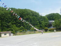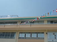 駐輪場の区分け、そして「万国旗」も設置でき,子どもたちの活動に花を添えていただき,きっとより盛