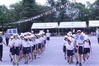 発表に向けた練習も大詰め。暑い陽ざしの中でも,お家の方々に自分の精一杯の姿を見せたいと