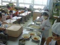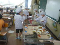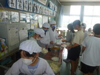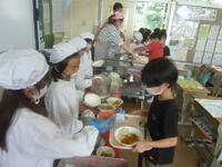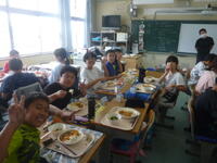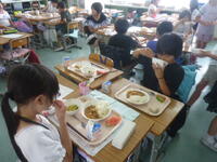今日で一学期の給食も終わりです。最後のメニューは子どもたちが大好きなカレーでした。配膳も素早く行い,みんな笑顔いっぱいでおいしそうに食べていました。