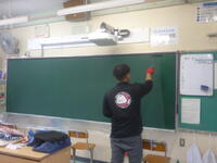 夏休みに入り,児童の皆さんが登校していない学校では,業者の方々が,黒板の塗り替え,