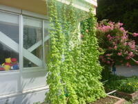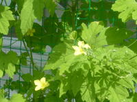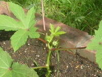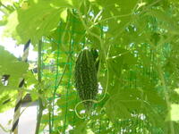校庭に授業で植えた「ゴーヤ」や「おくら」,「大豆」など大きく育っていますよ!