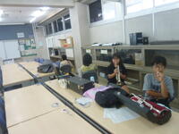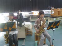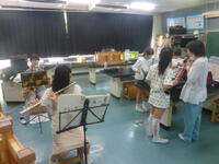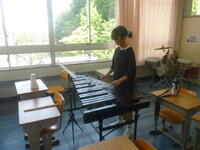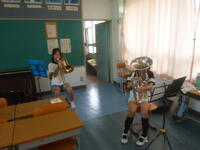 校舎内では,「吹奏楽部」が練習を頑張っています。上手に演奏できるようファイトです!