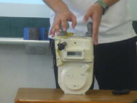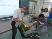 「発電体験」では,全員が一人ずつ発電機を10秒間手回しして,発電量を計測しました。