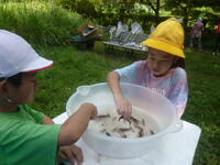 「虫が触れない」と言っていた子も,自分で網でとった虫は,優しくかごに入れ,嬉しそう