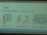 京葉ガスの方が講師となり,もしもの災害時に備え、とるべき行動や備えておくべき物について学びました。