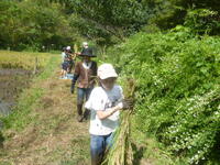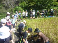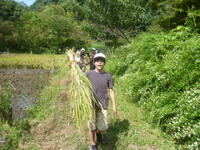 役割分担を何回も交代しながら,みんなで力を合わせて稲刈りを行いました。