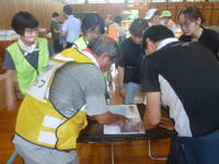 避難所運営訓練は、13時25分に大地震が発生したとの前提で行われました。